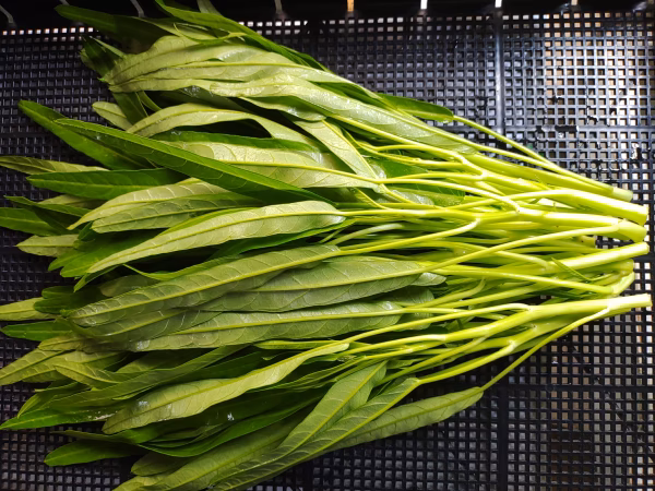 「空心菜って、炒め物だけでしょう?」そんな風に思っていませんか? 私たちが愛情込めて育てた【ホワイト空心菜】は、一般的な空心菜とは一線を画す、細葉でスラリとした立ち姿、そして何よりも目を引くのが、白く透き通るような茎と鮮やかな緑の葉のコントラスト。その美しさだけでなく、一番の魅力は、クセがなく、柔らかいこと。だから、定番のタイ料理「パッ・パックブン・ファイ・デーン(空心菜炒め)」はもちろんのこと、柔らかい葉や茎の上部は生のままサラダでいただけます! サラダ以外にも、ホワイト空心菜の可能性は無限大!さっと茹でておひたしにしたり、パスタやリゾットに加えてイタリアンの彩りを楽しんだり。お肉料理の付け合わせに添えれば、食卓が一気に華やぎます。栄養価も高く、ビタミンやミネラルが豊富なので、美容と健康を気遣う方にもぴったり。 シャキシャキとした歯ざわりは、一度食べたら忘れられないはず。ぜひこの機会に、私たちの自信作「ホワイト空心菜」を試してみませんか?きっと、あなたの食卓に新しい感動と笑顔を運んでくれるはずです。 農薬節減栽培 : 農薬 (不使用)、化学肥料 (必要量を適正使用)