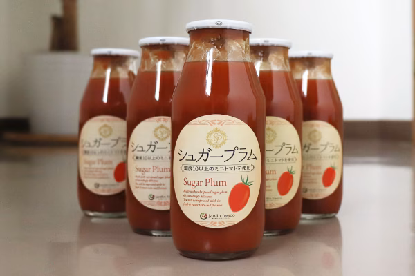 【セット内容】 シュガープラムジュース(180ml)×6本 【商品について】 高糖度ミニトマト「シュガープラム」100%、 コク深い甘さの高リコピンジュース シュガープラムは、jardin(ハルディン)育種のオリジナル品種。一般的なミニトマトとは一線を画す、10度以上の圧倒的な糖度を実現したミニトマトです。 トマト特有の青臭さはほとんどなく、まるでフルーツトマトの最高峰とも言える味わい。 そんなシュガープラムをギュッと凝縮した『シュガープラムジュース』は、生のシュガープラムとは一味違うコク深い甘さの高リコピンジュースです。 そのまま飲むのはもちろん、炭酸やビールで割っても格別な美味しさをお楽しみいただけます。 原材料はシュガープラムのみ、余計な味付けは一切なし。 パスタや煮込み料理、ソースやドレッシングなど様々なお料理にもご活用いただけます。 美容と健康に…毎日の食事に1杯のシュガープラムジュースはいかがでしょうか。 【シュガープラムのGABA(ギャバ)】 シュガープラムとジュースのGABA含有量を検査してみたところ… 生のシュガープラム:53mg/100g ジュース:67mg/100g 2025.11.09 日本食品分析センター調べ(時期や環境により変動有) 一般的なトマトのGABAが20~30mgと言われています。 GABAは熱に強く加工の過程(加熱や濃縮)で増える性質があるため、シュガープラムも生で食べるよりジュースを飲んだ方が、手軽にGABAを効率よく摂取できます。 また、ジュースのリコピン含有量を調べたところ、 ジュース:18.5mg/100g 2025.11.09 日本食品分析センター調べ(時期や環境により変動有) こちらも生のシュガープラムより含有量が上回りました。 ※生のシュガープラムは、リコピン13mg/100g:一般的なミニトマトの約1.6倍 忙しいとき、時間がないとき、カンタンな食事ですませたい時… こんな時にはシュガープラムジュースでリコピンもGABAも摂取しましょう! 【シュガープラムジュース成分】 1.シュガープラム 1本(180ml)のジュースに約400g弱のトマトの実を使用。 生のシュガープラムよりもさらに濃厚な甘味とうま味をお楽しみいただけます。 2.酸味料(クエン酸) (注)ジュースに加工する際、シュガープラムは糖度が高過ぎPh値の調整をしなければいけない為、やむなく酸味料(クエン酸)を使用する場合がございます。 【こだわりの「完熟採り」】 シュガープラムの糖度を存分に引き出すために、私たちはシュガープラムが樹の上でしっかりと赤く熟してから収穫する「完熟採り」にこだわっています。 完熟するまで収穫を待つことで、本来の甘み・うま味が最大限に引き出され、濃厚な味わいをお楽しみいただけます。 【栄養成分/100gあたり】 エネルギー33.7kcal、炭水化物8.4g、たんぱく質1.3g、食塩相当量0.01g、脂質0.1g 【商品のお届けについて】 毎週 火曜・金曜日発送(祝日の場合は発送不可の場合あり) 土日祝日は休業日のため、商品や受注についてのお問い合わせ、および発送は平日営業時間内のご対応となります。ご了承ください。 【保存について】 直射日光を避け常温保存してください。 ※開栓後は冷蔵庫にて保存し、お早めにお召し上がりください。 ※よく振ってからお飲みください。