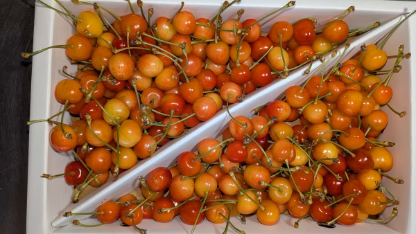 品種は佐藤錦です。高温障害対策で早もぎしております。小サイズのため価格はリーズナブルに設定しております。