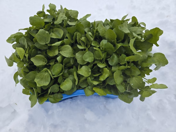 気温も上昇して大きめのクレソンになっています。虫も活発になって葉に斑点や虫食いがついている場合があります。