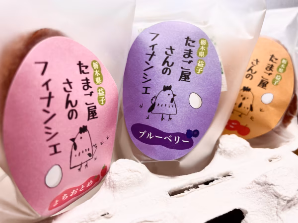 ・たまご屋さんらしく、卵の形のフィナンシェが卵のパックに入ったパッケージ