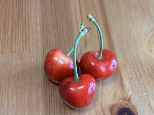 甘みの強い「紅秀峰」に、果実が大きい「サミット」を交配。国産品種の中でも最大級で、果実がハート形をしているのが特徴です。鮮やかなルビー色で艶が良く、果肉はかためで適度な果汁があり、種がはがれやすく食べやすい。すぐれた食味と美しい外観から、贈答品として最適です。