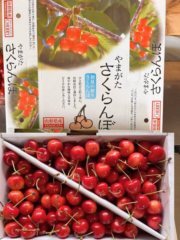 品種は佐藤錦、味はとても甘酸っぱいくて美味しい