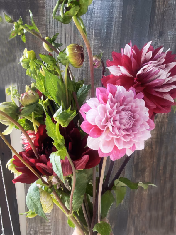 ひとつのブーケに物語があるような美しさです。コロンとしたフォルムも愛らしく、見ているだけでときめく一束です。