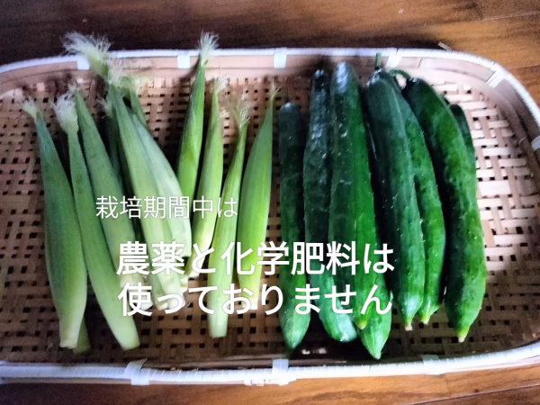 今回はきゅうり1キロ(10〜15本)とヤングコーン(皮付き)10本を厳選し、1〜7営業日以内に常温でお送り致します。