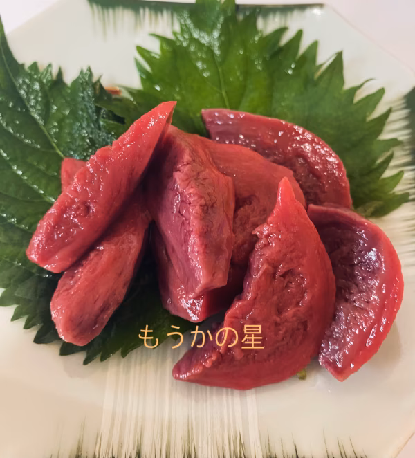 今回は自家船にて気仙沼より二晩沖に走り北海道道東沖からとってきた もうかのほし というサメの心臓です