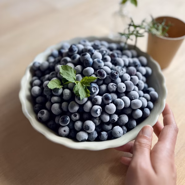 完熟ブルーベリーは、半解凍でシャリッと、そのままでもジューシーに楽しめます。ヨーグルトとあわせたり、子どものおやつにどうぞ。