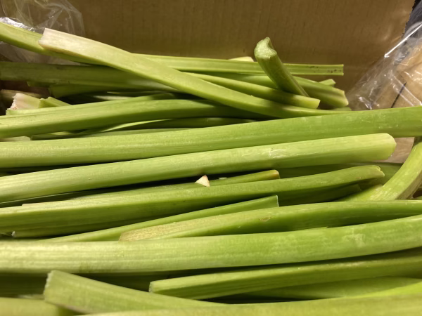 新鮮なルバーブを60サイズ箱に詰めて、お送りいたします。箱込み2キロ入ります。クランブルは700〜900gが適当かと思います。残りは、ルバーブのシロップ漬けやジャムでお楽しみ下さい。