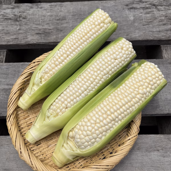 黄色いとうもろこしに比べ糖度が高く甘みの強いホワイトコーン。その中でもさらに糖度の高い品種を独自栽培しております。淡路島の日光を浴び、実いっぱいに詰まった果汁は、フルーツのようでジューシーな味わい。「フルーツもろこし」とも呼ばれています。表皮が薄くみずみずしいので、まずは生のままめし上がってみてください!火を通すと、なんとも言えない旨味が口に広がります。