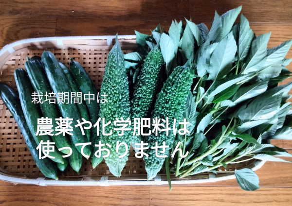 ※この商品は冷蔵便でお送り致します。送料は全国一律ですが、沖縄県や離島にはお送りできませんので、ご了承下さい。 栽培期間中は農薬や化学肥料を使っておらず、豊かな自然の中でじっくり育った作物をお届け致します。 (写真はイメージです) 夜はまだまだ氷点下になる3月の半ばにはきゅうりの種、4月に入ってからはゴーヤ、5月中旬にはモロヘイヤの種を播きました。昼間は日差しで暖められた簡易ビニールハウスの中に、夜は寒さから守るために建物の中に移動しながら種を発芽させ、苗を育てました。そうしてじっくり育った苗は畑に植えてから力強く葉っぱを伸ばし、きゅうりとゴーヤはしっかりと実を付けました。 きゅうりは酢の物、マヨネーズかけ、味噌や醤油麹かけなど、暑い時期に冷たくて美味しい食べ方がたくさんあります。 ゴーヤはゴーヤチャンプルはもちろん、天ぷらも美味しいです。 モロヘイヤはおひたしの他、汁物の具もお勧めです。 今回はきゅうり1キロ(9〜14本)とゴーヤ700g(3〜4本)、モロヘイヤ100gを厳選し、1〜7営業日以内に冷蔵便でお送り致します。 可能な限り見た目も綺麗な物を選択致しますが、多少の不揃いや小さな凹みや傷はご了承下さい。また、大きく曲がったものは除きますが、少しの曲がりはご了承下さい。 おまけは、ツルムラサキ、じゃがいも、大葉、オカヒジキ、モロヘイヤ、ピーマン、茄子などの旬の野菜から選択し、お送り致します。お選びいただくことはできません。ご了承下さい。 (ご不要な方はご連絡下さい) ご注文をお待ちしております。
