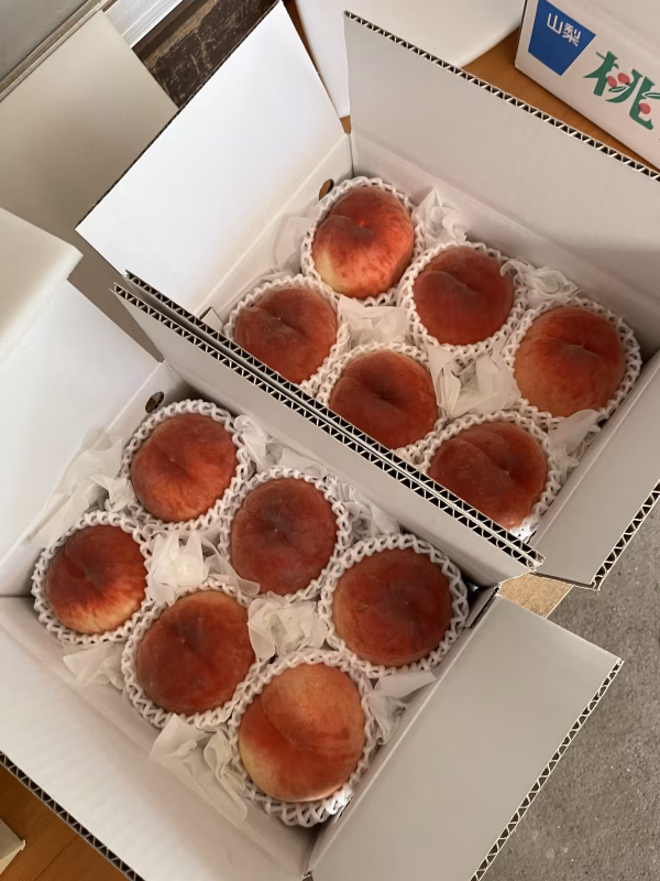 - 他の品種と同じく直射日光を避け涼しい場所での保管をお勧めしますが追熟のし過ぎにはご注意ください。(何度もお伝えしますが、今までの桃のように時間をかけても柔らかくなりにくいです) 冷蔵庫で保管される時は新聞紙で包んでから保管すると冷蔵焼けが防げます。しかし硬いままの保管を希望されない限り食べる数時間前に冷やしたり、お好みの追熟まで進んでから冷蔵保存される方が味の劣化は少ないです。 収穫したその日に発送致します。ぜひ一度固めな桃を試して下さい。