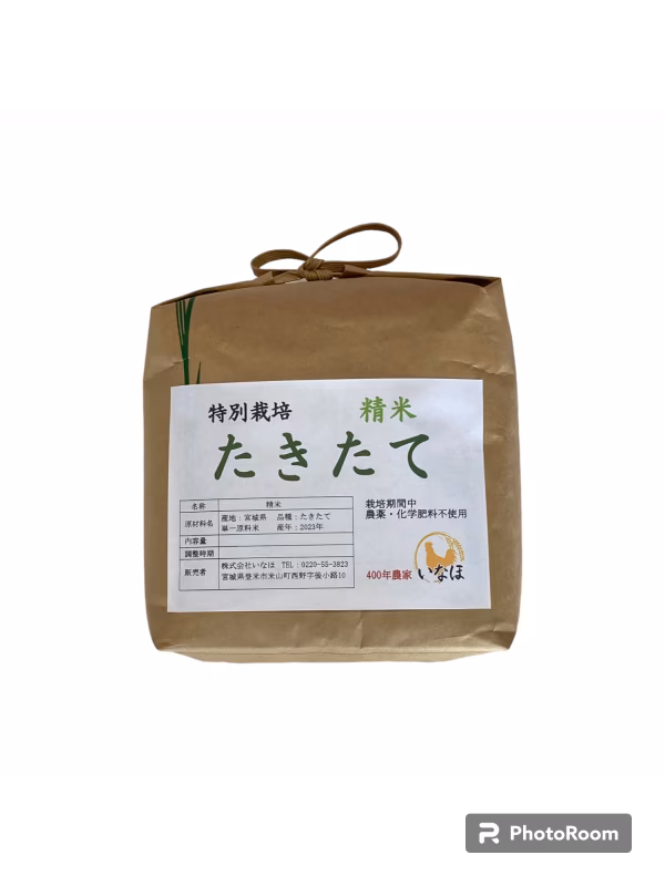農薬・化学肥料を使用しないで栽培したお米として、宮城県の特別栽培米の認証を取得しています。