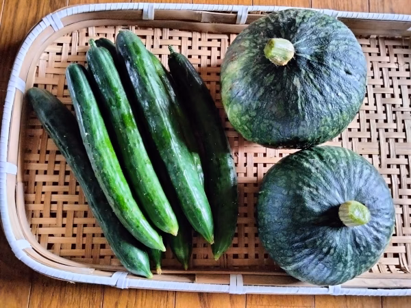 かぼちゃは煮物や炒め物はもちろん、薄く切って焼いて、少しお醤油をかけるだけでも美味しいです。きゅうりは酢の物、マヨネーズかけ、味噌や醤油麹かけなど、暑い時期に冷たくて美味しい食べ方がたくさんあります。