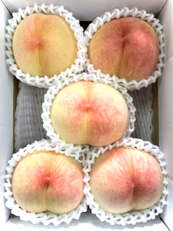 到着後、上蓋を開け直射日光を避けた涼しい場所で保管してください。桃に青みが残っている場合は何日か置いてから食べてください。 青みが抜けクリーム色になり、爪で軽く押して皮が凹むくらいになれば食べ頃です。 冷蔵庫で1時間程冷やしてからお召し上がりください。 クール便での到着の場合は箱から出して冷蔵庫での保存をお勧めします。 桃はとてもデリケートな果物です。追熟時の変化に十分ご注意下さい。