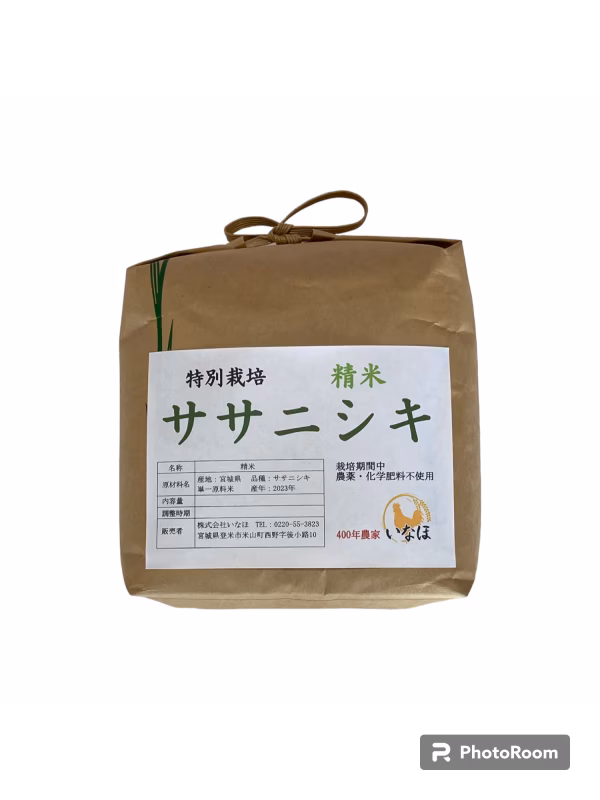 【今では生産農家が少ない貴重なササニシキ】 ササニシキはかつては宮城を代表する品種でしたが、栽培の難しさから生産する農家が減り、なおかつ農薬不使用栽培のササニシキは大変希少です。 毎日食べても飽きないあっさりした食味で、コシヒカリ系とは違うおいしさの根強い人気があります。「やっぱりササニシキが好き。冷めてもおいしい。お寿司など和食に合う。」と感想が寄せられています。 【400年農家】 宮城県登米市米山町は、地名に米が2つ重なる古くからの米の名産地です。いなほの代表を務める鈴木豊は、その米山町で代々400年続く米農家の22代目になります。根っからの百姓で、「自分たちもおいしく安心して食べられるものをお客様にもお届けしたい」という思いで米づくりに励んでいます。 【宮城県認証の特別栽培米】 農薬・化学肥料を使用しないで栽培したお米として、宮城県の特別栽培米の認証を取得しています。 【米づくりのこだわり】 米作りの特徴の一つは、有機物の発酵を利用した土作りと肥料作りです。私たちが行う平飼い養鶏の鶏舎にはもみ殻を敷き詰め、鶏糞が混ざることで堆肥の原料ができます。これを微生物の力を借りて発酵させ良質な堆肥を作り、田んぼに散布し肥料にします。(鶏のエサには抗生物質を使用していないので安心です。) 米作りの二つ目の特徴は、ポット式の育苗と疎植の田植えです。どちらも聞き慣れない言葉だと思いますが、苗箱で苗を育てるとき、その苗を田んぼに移植するときも一本一本の苗が太く丈夫に育つように間隔を広く取る栽培方法です。 そして収穫の時期が来たら米の品質を保つため適期を逃さないよう刈り取ります。 玄米は低音倉庫で管理し注文を受けてから精米して皆様にお届けしています。 #お米 #おこめ
