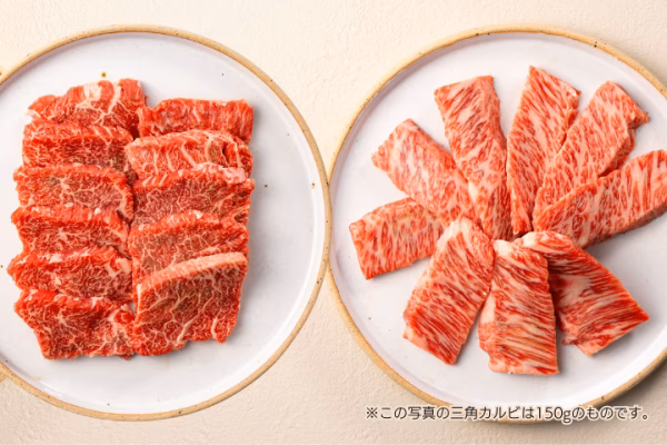 ※商品画像1枚目右~2枚目の三角カルビは150gのものです。実際の商品は100gですのでご注意ください。サシの入り方には個体差がございますが味わいや食感はほぼ同じです。予めご了承ください。
