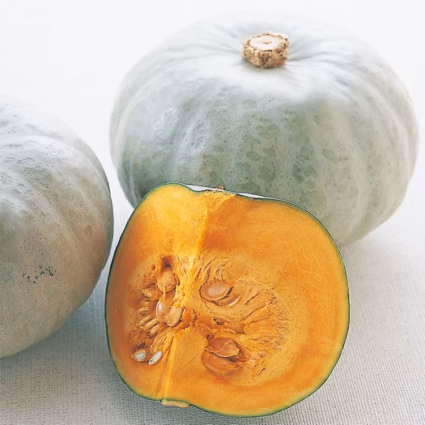 雪化粧南瓜の良い物は、灰白色又は薄い黄緑色の果皮とホクホクとした食感が特徴の白っぽい南瓜で、粉質で甘みが強く、たの西洋南瓜より貯蔵性も高いため、長期間美味しく食べられるのが魅力です。