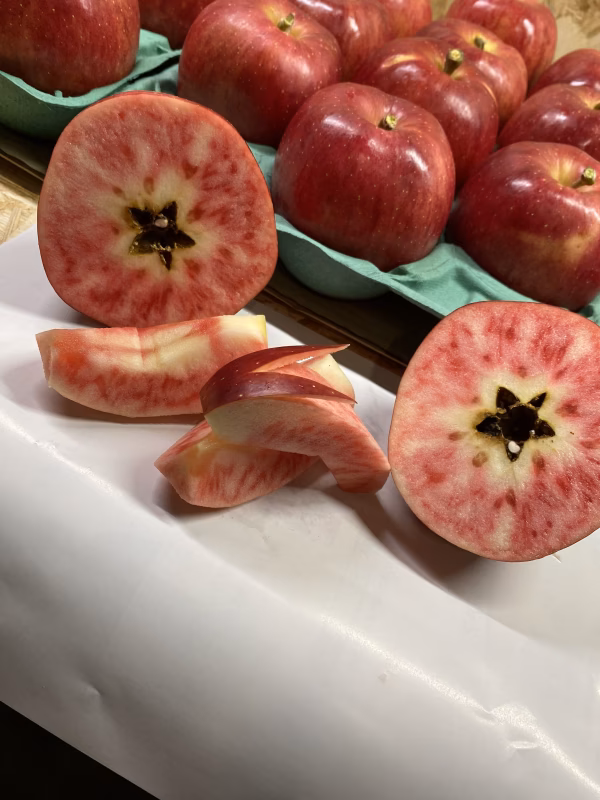 赤肉系りんごは近年増えて来ましたが、酸っぱすぎて加工向けが多いですが、なかの真紅は糖度も高く酸味がバランスよく生食でも美味しく食べれる赤肉最強りんご✨