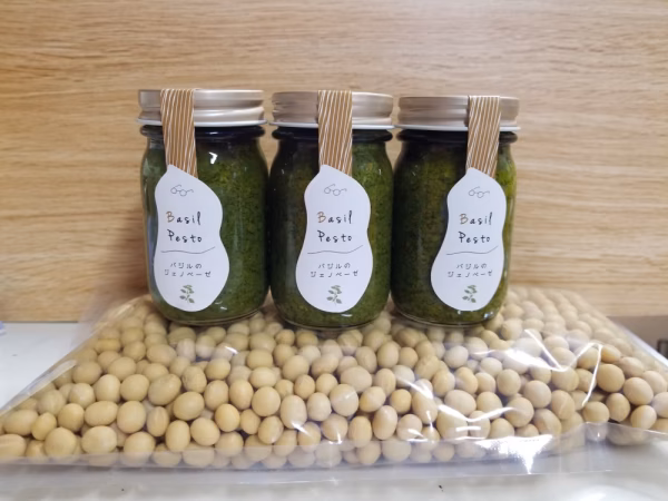 バジルのジェノベーゼ×3、大豆(たちながは)500g×1のセットです。
