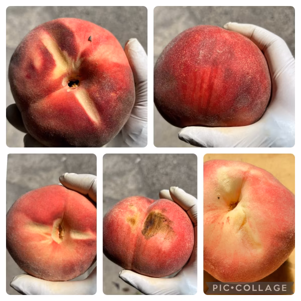また昨年には収穫時や到着後も外側は硬いのに内側が予想より柔らかくなってしまう内熟現象の桃が入っていたと連絡を頂きました。今年も内熟の桃の発生が予想されますのでこちらもご理解いただけますようお願いします。