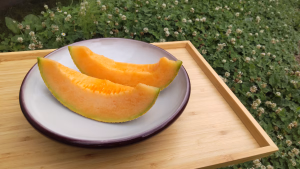 比較的柔らかい肉質で、香り高く、上品な甘さが特徴です。(赤肉メロン、キング種)