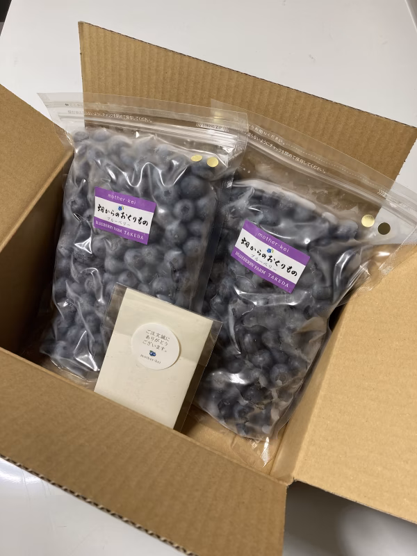 武田ブルーベリー園はしまなみ海道の愛媛県側の玄関口今治市にあり、瀬戸内海の温暖な気候に恵まれ作物がよく育つ環境にあります。生産者自らが安心して食べられるものを作りたいという思いで、2008年にブルーベリー栽培を始めました。土耕栽培で自然に近い環境で育てているのが特徴です。 もちろん、化学農薬・化学肥料・除草剤を使用しておりません。 ヨモギの緑汁・黒砂糖・米糠・魚骨粉・油粕を手で混ぜ合わせ発酵させて作ったぼかし肥料で育てております。 収穫後、新鮮なうちに冷凍させていますので、そのままシャーベット感覚でいただくかヨーグルトに混ぜてお召し上がりください。 大粒で味もしっかりしております。 収穫時期は6月下旬頃から9月上旬迄です。一日でも早く皆様にお届けしたいのですが、真夏は気温が高いため輸送中に解けやすくなります。少しでも良い状態でお届けしたいので、少し涼しくなる9月中旬頃から発送を開始したいと思っております。今しばらくお待ちくださいませ。 ※2022年9月1日 価格変更のお知らせ  2022年2月1日より販売手数料が15%から20%に改定されました。  最近の急激な物価上昇に伴い諸材料費も上がってきております。  ブルーベリー栽培にも値上げの影響が出てきておりますので、このたび  やむなく価格を上げさせていただきました。こだわりの栽培方法で  美味しいブルーベリーを皆様にお届けできますよう頑張ってまいります  ので、これからもどうぞよろしくお願いいたします。