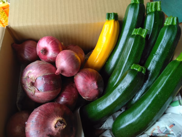 - ズッキーニ…冷蔵保存。赤玉ねぎ…冷暗所の風通しの良い場所で保管。
