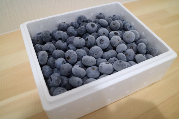 北田りんご園では、大粒で味、香りともに爽やかなブルーベリーを完熟に近づけるよう、ぎりぎりのタイミングで収穫するよう摘み取りを行っています。今回の商品は、生果での訳あり品を冷凍した加工向けのものになります。ケーキやマフィン、スムージー、お菓子作りにいかがでしょうか。もちろんそのままでも食べられます。ぜひお試しください。