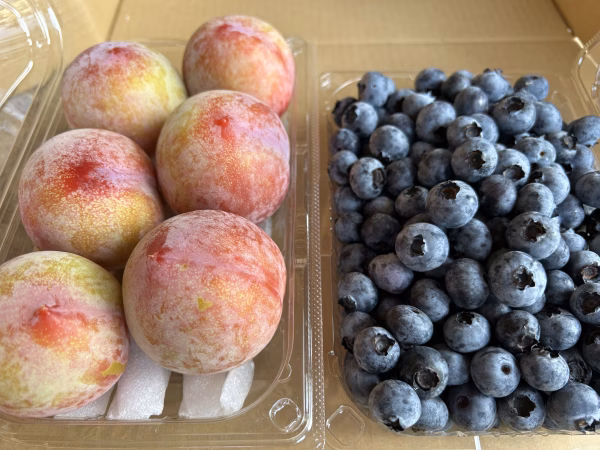 フレッシュな朝採れの『ブルーベリー』と、暑い夏にぴったりな甘酸っぱい『スモモ』の詰め合わせです。