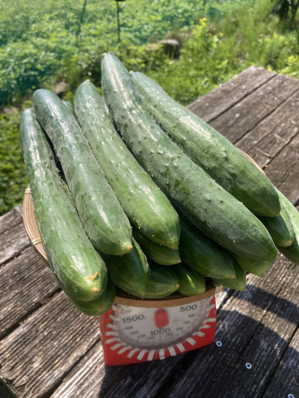長野県の自然農法センターから取り寄せた「バテシラズ」キュウリの種子から自家採取3年目のキュウリです。歯切れ良く、生食でも漬物やピクルス、ぬか漬けでもとても美味しく、もう普通のきゅうりには戻れません。