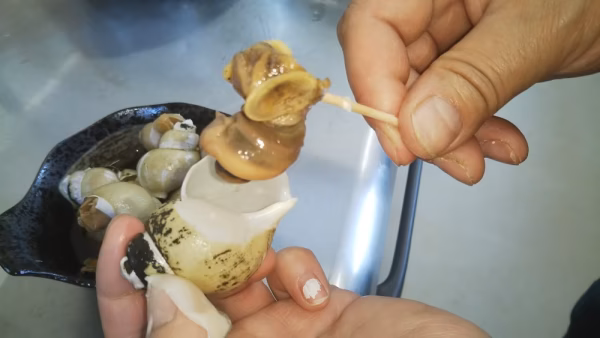 箸やつま楊枝でクルンとやれば、肝まで美味しく頂けます。