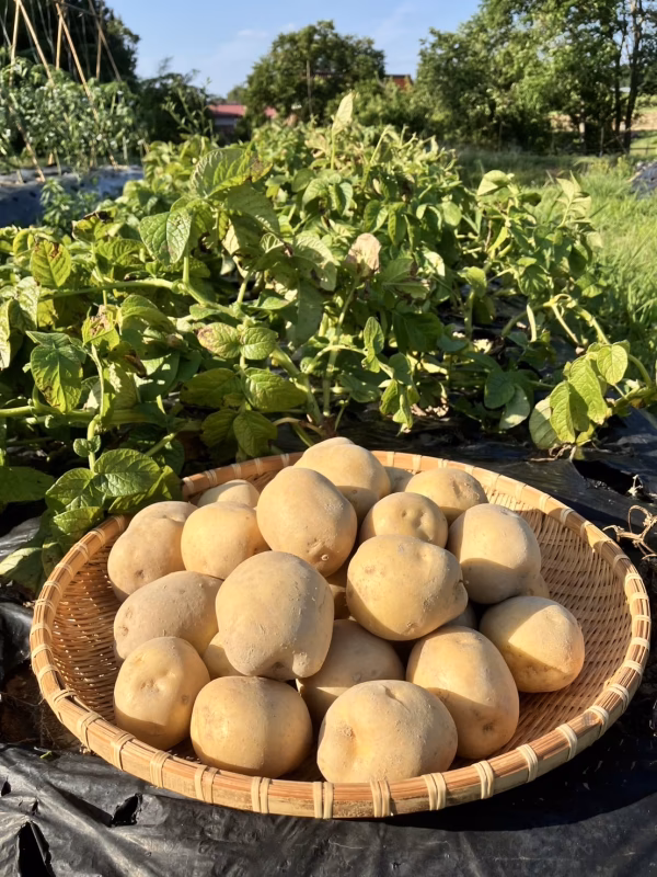 ホクホクとした食感が魅力のじゃがいも「とうや」を、自然の力で育てました。農薬・化学肥料を一切使わず、土の中の微生物の力を活かす「菌ちゃん農法」で丁寧に栽培。安心・安全で、旨みたっぷりのじゃがいもです。 ◾️品種・味の特徴 「とうや」は、なめらかな舌触りと淡い黄色の果肉が特徴の品種。煮崩れしにくく、ホクホク感がありながらもしっとりとした口当たりで、煮物・カレー・ポテトサラダなど、どんな料理にもよく合います。ほんのり甘みも感じられ、素材そのものの美味しさを楽しめます。我が家の息子はフライドポテトにするのがお気に入り。 ◾️数量・大きさの目安 ・2kg(約12〜15個前後) ・4kg(約25〜30個前後) ※大きさにはばらつきがあります。 ◾️栽培/生産方法・こだわり 農薬・化学肥料を一切使用せず、「菌ちゃん農法」により土づくりから丁寧に取り組んでいます。微生物の力で土を豊かにし、植物本来の力を引き出すことで、皮ごと安心して食べられるじゃがいもが育ちました。お子さまにも安心してお召し上がりいただけます。 ◾️ご注文に際しての注意点 ・サイズにバラつきがあります。 ・天候や収穫状況により、発送までお時間をいただくことがございます。