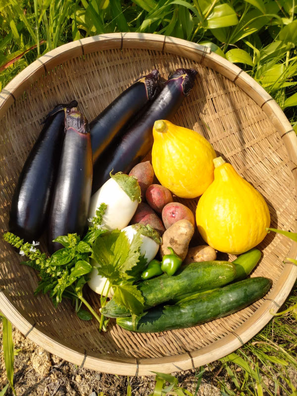 夏は、看板野菜の”ふわとろ長なす”を中心に元気なお野菜たちをお届けします。