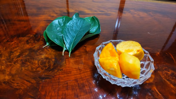 四角く平べったい形とシャキシャキとした食感が特徴の甘柿で、種がほとんどなくそのまま食べられます。