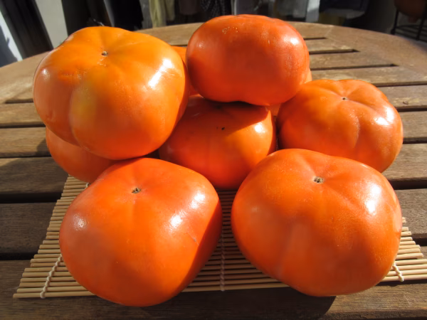 四角く平べったい形とシャキシャキとした食感が特徴の甘柿で、種がほとんどなくそのまま食べられます。