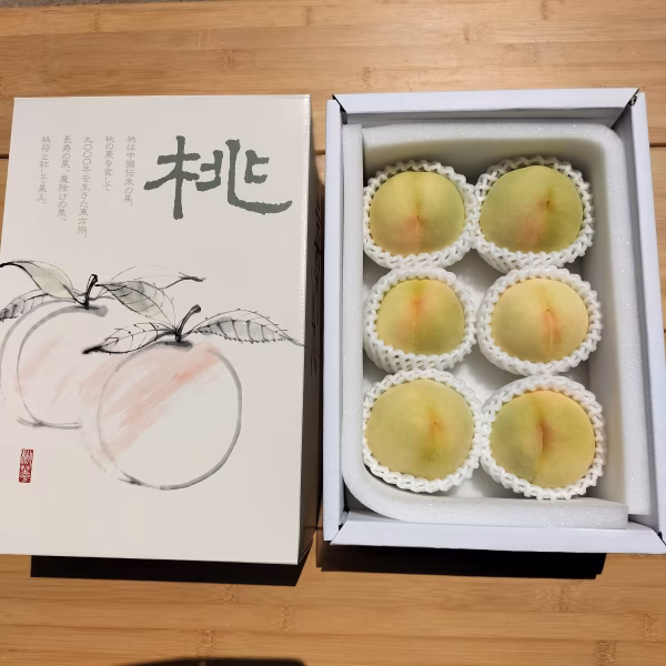 岡山の桃は袋をかけて育てるので真っ赤になりません。