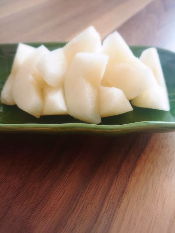 ※幸水梨には、「芯腐れ症」という症状が出るものがございます。これは、収穫後に急速に内部で芯の周りから腐っていくものです。内部から進むのでもぎたての果実は、外見から判別できません。I日、2日経つと軸と反対側の果実のお尻のところに茶色い水が浮き出てきます。300-400玉に1玉位あります。万一芯腐れ症の果実があっても、ご理解頂ける方のご購入お願い致します。