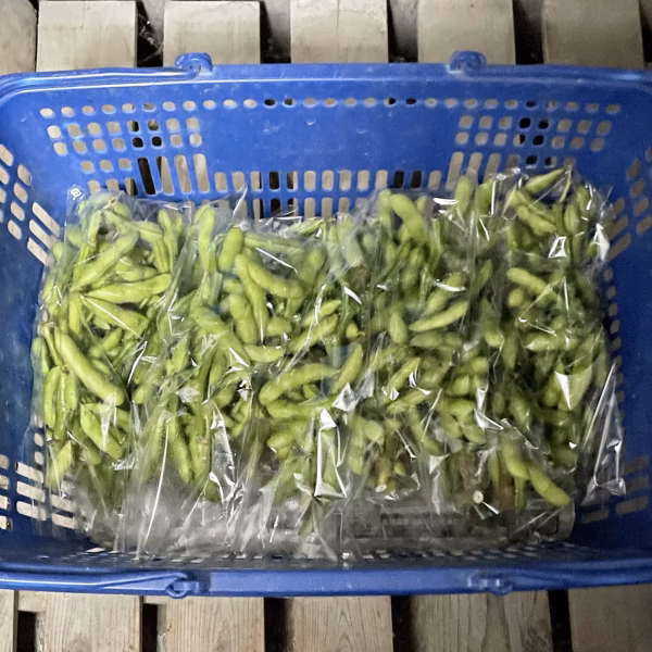 大阪の小池農園です。 枝付きで重さが200gの枝豆を 15袋セットで出品します。 80サイズ、冷蔵で発送します。 「鈴だるま」という品種です。 野菜の保存に適した袋(野菜が呼吸出来る袋)(防曇袋)に入れています。