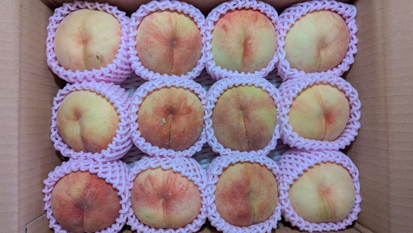 桃の品種はあかつきです。1玉250gサイズで硬めのものをお届けします。常温に晒すと追熟しますので、お好みの柔らかさでお召し上がり下さい。なお、家庭用の商品のため、キズや割れ、模様等がございますのでご了承下さい。