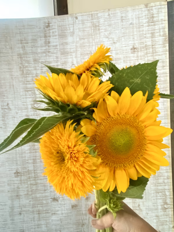 テディベアひまわり 、モフモフとした花びらがなんとも可愛い、まるでぬいぐるみのような「テディベアひまわり」。見ているだけで元気が湧いてくる、ふわふわのビタミンカラーはまさに小さな太陽。優しさと元気を贈るギフトに、お部屋の明るいアクセントとしても大活躍です♪