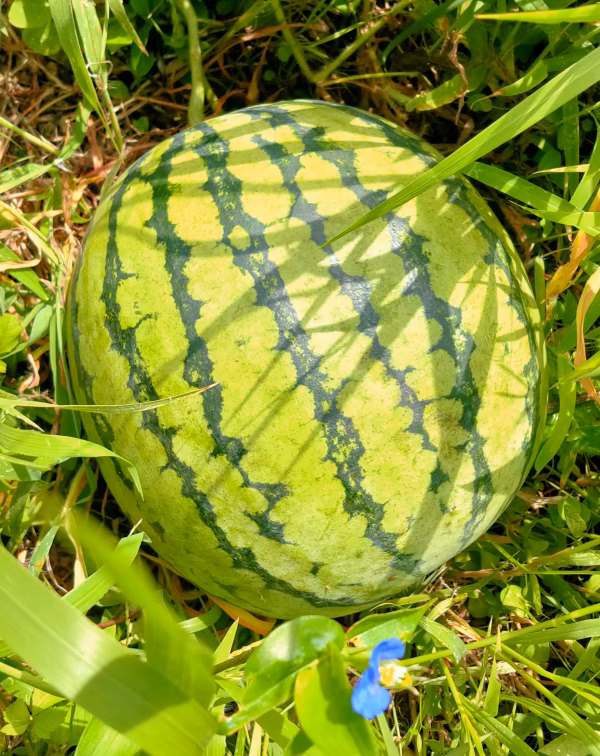 日本で昔ある固定種、在来種のスイカ、新旭大和2号スイカ。この品種を作っている人も珍しいかと思いますが、それを無農薬、無肥料で作っているのはかなり珍しいかと思います。