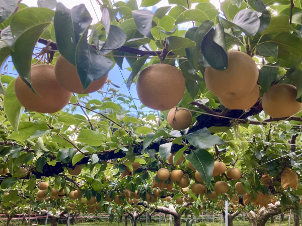 [ 9月上旬より収穫、発送を予定しております。] 鳥取県東部の佐治町(さじちょう)で育てた「豊水(ほうすい)梨」です。甘みと酸味のバランスが絶妙で、梨汁が溢れます。本当によく出来た品種だと思います。 関東出身の私は「これぞ梨!」と思える味の品種です。 袋をかけない「無袋栽培」で日光をたくさん浴びました。防蛾灯で減農薬、虫の対策をしています。 適熟での収穫を心掛けておりますので、お待たせする可能性もありますが、ご了承ください。 糖度が高く品質が落ちやすい梨ですので、冷蔵庫や涼しい場所での保存をお願いします。 冷蔵庫で冷やして食べると一段と美味しくいただけます。 フルーツキャップを付けて、写真のダンボール箱を白テープとめの梱包となります。 のしなどをご希望の方の方は、お申し付けください。内のしとなります。配送トラブル防止のため、同梱不可とさせていただきます。