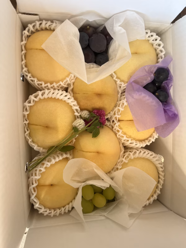 ※JAに出荷する時に一緒に準備します。木で完熟させた桃ではなく、あくまでも市場経由で販売する桃の収穫時期に合わせています。到着時も硬めかと思いますが、店頭では3日程度経過した桃が並ぶ為、いつもより熟度が足りないと感じるかもしれません。その場合はお好みに合わせて追熟して下さい。また桃は日持ちし難い果物ですので追熟の際には十分お気をつけ下さい。