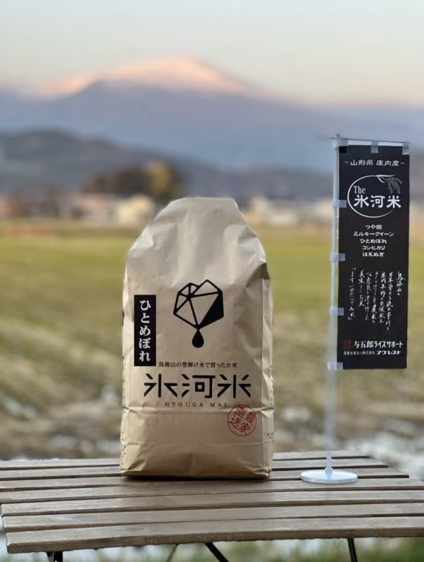 当店で販売している『氷河米』とは、鳥海山の雪解け水と大地のミネラルをたっぷり含んだ水で育ったお米です。