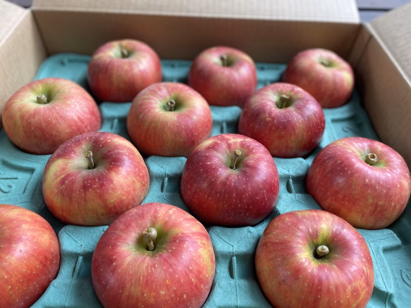 甘味の中に適度な酸味があり、果汁をたっぷり含んでいて風味のよいりんごです。丸かじりしても美味しいです。