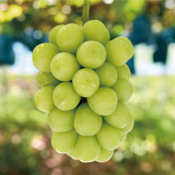 🍇シャインマスカットは、とても甘く、口の中でマスカットの心地よい香りが広がります。皮ごと食べられるので、人気のブドウです。