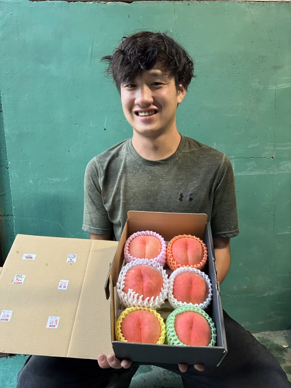 北海道から岩手に移住し、桃で独立するために当園園主の菅野のもとで猛勉強中💪✨