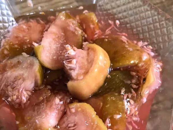 完熟イチジクのピクルスはとろける味わいです。バニラアイスやヨーグルトと一緒に。またステーキや豚テキのフルーツソース(醤油を少し加えてください)としても最高です