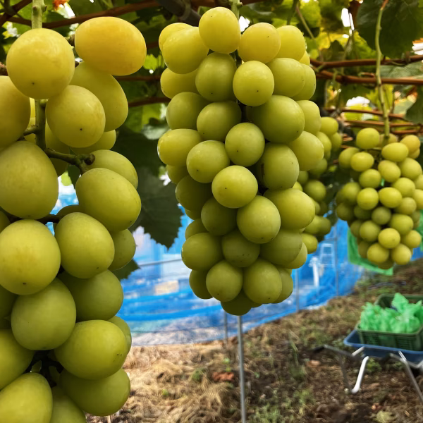 シャインマスカットは日本生まれの大粒ブドウで、マスカットの芳香、高い糖度、そして種がなく皮ごと食べられる点が特徴です。
