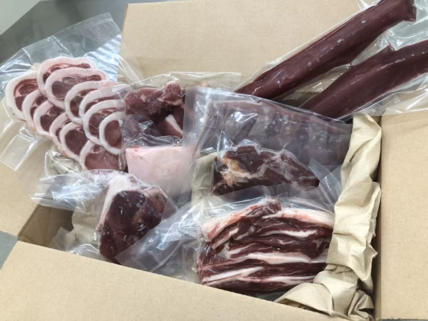 小分けのパック詰めした猪肉と鹿肉をその日の気分で箱いっぱいに詰め込みます!